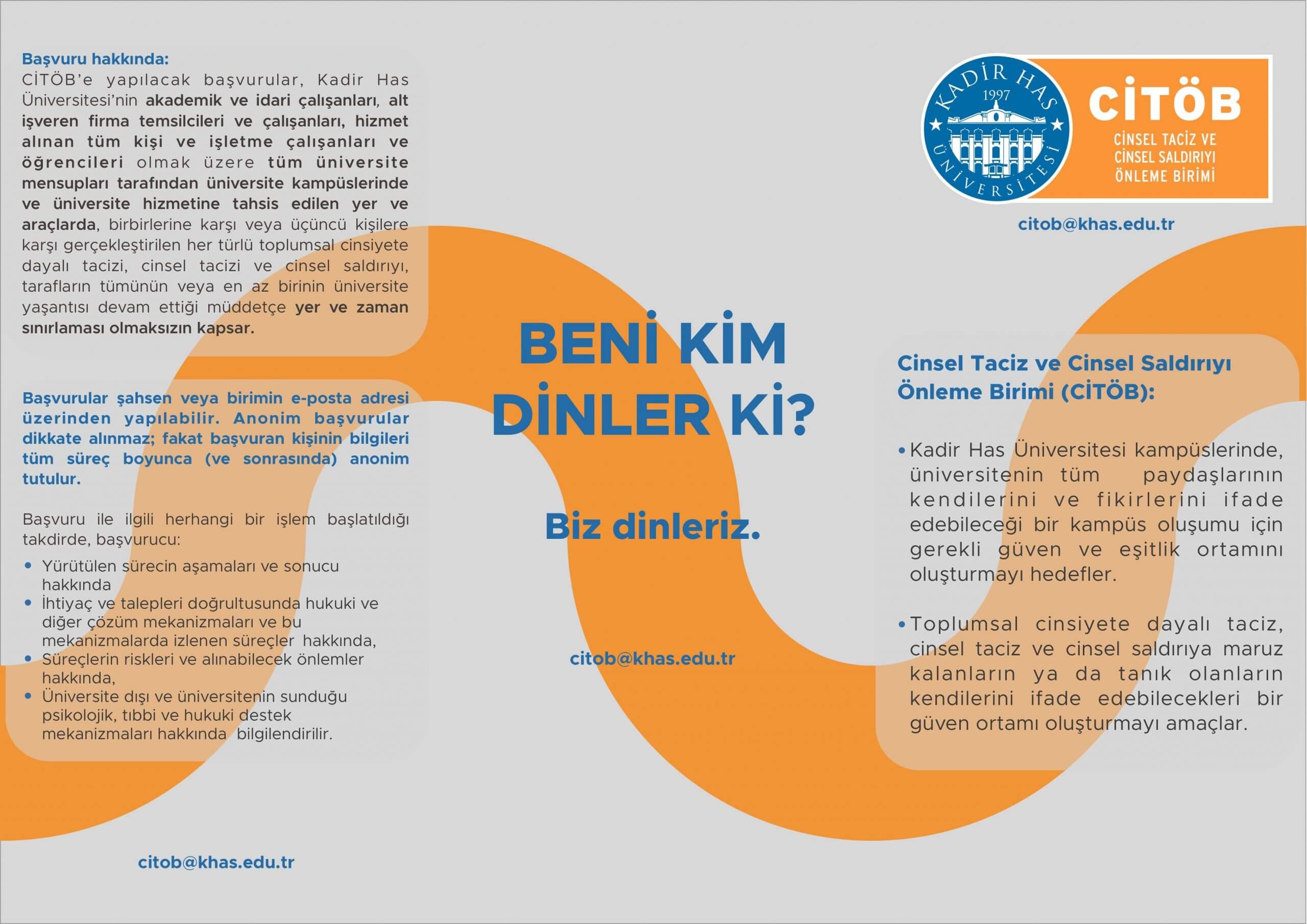 Cinsel Taciz ve Cinsel Saldırıyı Önleme Birimi’ne (CİTÖB) yapılacak başvurular, Kadir Has Üniversitesi’nin akademik ve idari çalışanları, alt işveren firma temsilcileri ve çalışanları, hizmet alınan tüm kişi ve işletme çalışanları ve öğrencileri olmak üzere tüm üniversite mensupları tarafından üniversite kampüslerinde ve üniversite hizmetine tahsis edilen yer ve araçlarda, birbirlerine karşı veya üçüncü kişilere karşı gerçekleştirilen her türlü toplumsal cinsiyete dayalı tacizi, cinsel tacizi ve cinsel saldırıyı, tarafların tümünün veya en az birinin üniversite yaşantısı devam ettiği müddetçe yer ve zaman sıkıntısı olmaksızın kapsar.