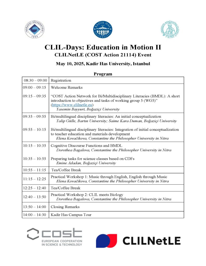 The third event of the CLIL Days series, titled “Education in Motion II”, will take place at our university on Saturday, May 10, 2025.
