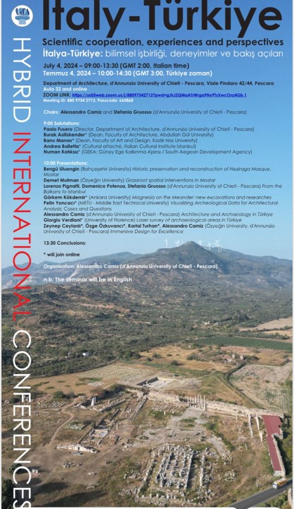 The international conference titled “ITALY-TURKEY Scientific cooperation, experiences and perspectives” was held on July 4, 2024. The event was coordinated by Assoc. Prof. Dr. Alessandro Camiz from Università degli Studi di Chieti – Pescara, and Prof. Dr. Banu Manav, Dean of KHAS Faculty of Art and Design, was a speaker.