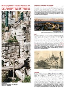 Delaminating Istanbul is part of the AAA Study trip for “Transformation, Cities and Buildings.” In September, we visited Istanbul, where the weather was pleasantly warm and the city was quieter than during the bustling summer tourist season. Our exploration focused on the intricate urban and architectural developments spanning various eras, including the Roman, Byzantine, Ottoman, and Turkish periods.