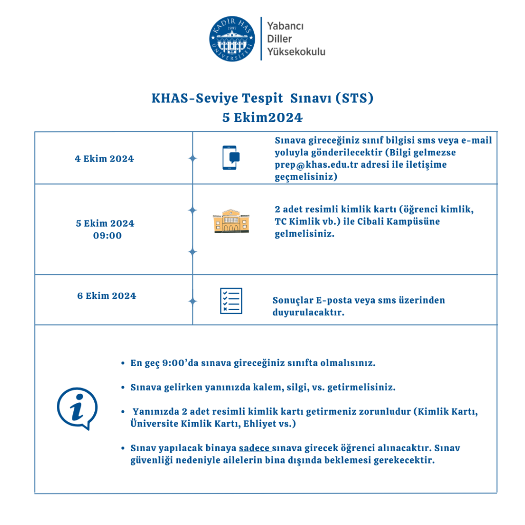 KHAS Seviye Tespit Sınavı hakkındaki detayları aşağıdaki dosyadan inceleyebilirsiniz.