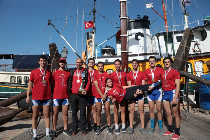 Cumhuriyet’in 100. yılını sporla ve dostlukla kutlamak üzere 28 Ekim Cumartesi günü bir araya gelen gençler, 2.100 metrelik parkur için son hazırlıklarını tamamladı. Saat 10.00’da Kadir Has Üniversitesi Cibali Kampüsü önünden başlayan ve Rahmi M. Koç Müzesi önünde son bulan yarışta Kadir Has Üniversitesi ekibinde antrenör Burkay Günay, dümenci Melike İdil Çalışkan iken, Necmi Batuhan Acar, Görkem Tekoğlu, Metehan Kara, Emirhan Yıldırım, Emre Keklik, Enver Erman, Berkay Öztürk ve Murat Alp Yardım kürek çekti. Koç Üniversitesi kürek takımını ise antrenör Yalçın Fidancı, dümenci Toprak Ata Kıvrak, Salihcan Kahraman, Ahmet Deniz Aydın, Nejat Işık, Mahmut Yusuf Güşlü, Onur Sapmaz, Cem Berk Görmüş, Furkan Polat ve Emir Saygılı oluşturdu.